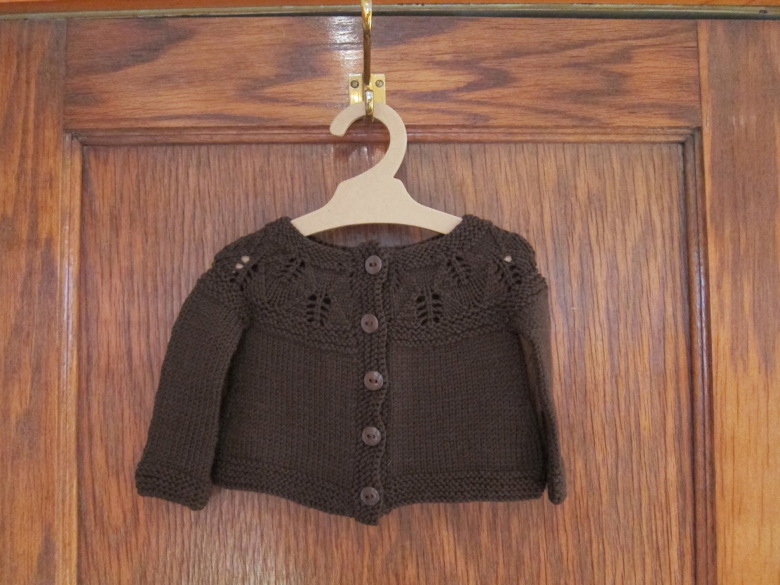 The leaf yoke pattern was very fun to knit. I used a rich dark brown to give the pattern a more “boyish” look. Picking up fewer stitches for the button bands would have worked better (or using a smaller needle), but I’m happy enough with it as is.